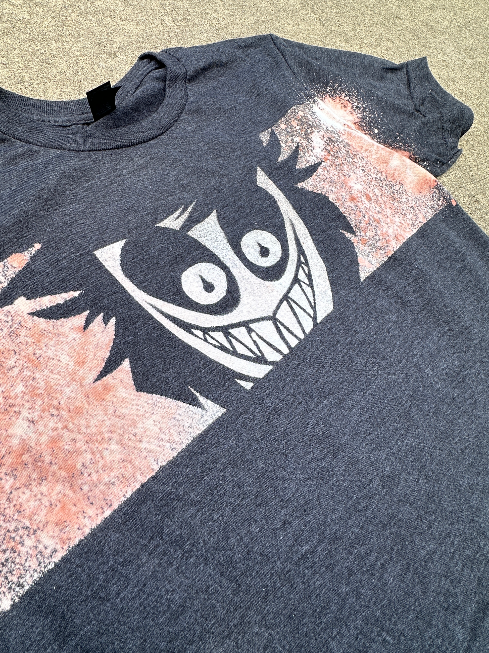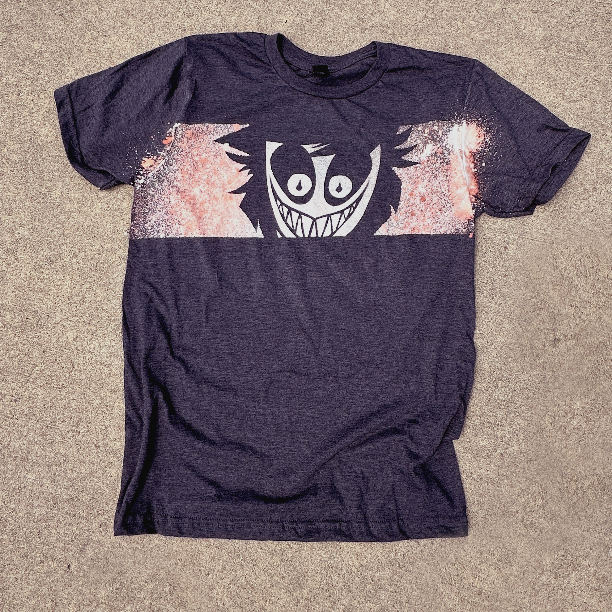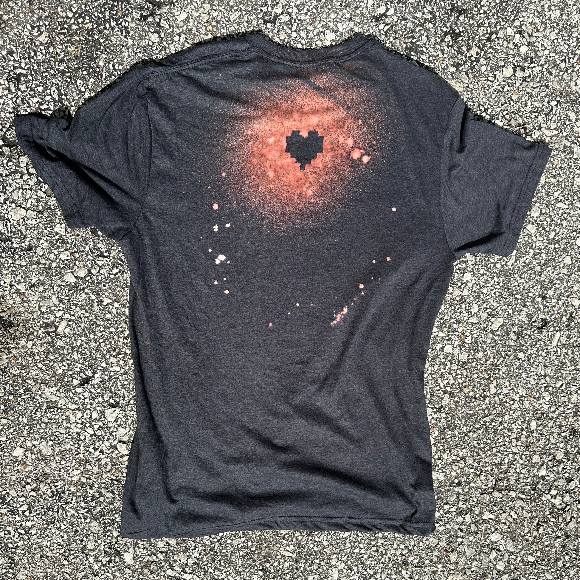 The unique design is handmade, using a stencil and bleach, ensuring that each shirt will be similar but unique in its splatter. The colors may vary slightly, particularly on non-black tshirts, but the design will not grow dull or crack. Making each shirt a one-of-a-kind piece of art!